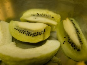 獼猴桃得名於獼猴對它的喜愛,其維生素C的含量極高。另外此果還含有血清促進素,可以幫助我們穩定情緒、鎮靜心情;豐富的膳食纖維能夠促進心臟健康、幫助消化。獼猴桃性酸,味甘寒,還具有生津潤燥,解熱除煩的功效,也是秋季水果的及佳之選!
